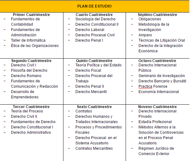 Formar profesionistas especialistas en Derecho y Negocios, que puedan analizar y evaluar críticamente las leyes que rigen las relaciones comerciales y de negocios internacionales, con el fin de utilizarlas y aplicarlas en beneficio de las instancias públicas y privadas que lo soliciten.